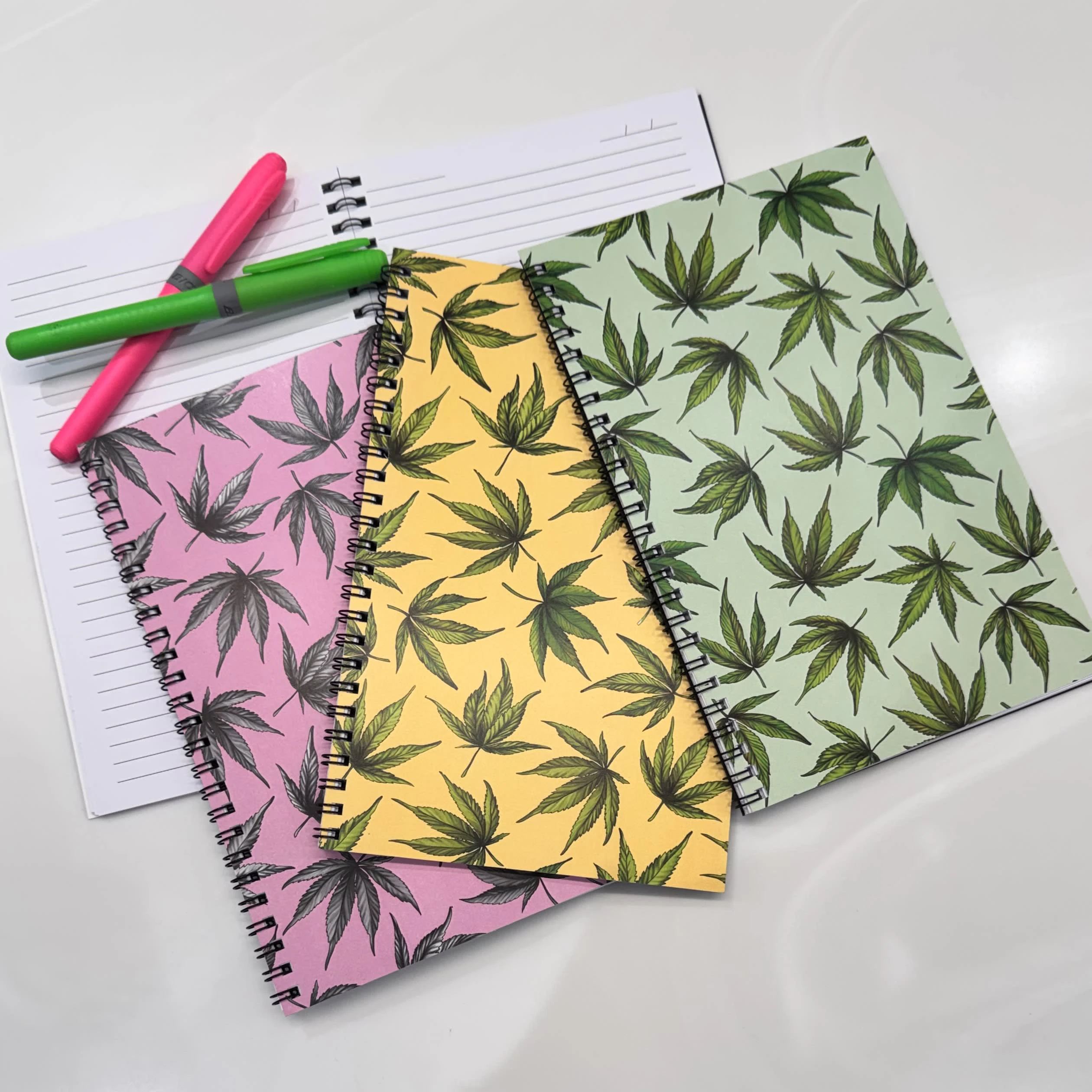 Pink Cannabis Leaf Notebook