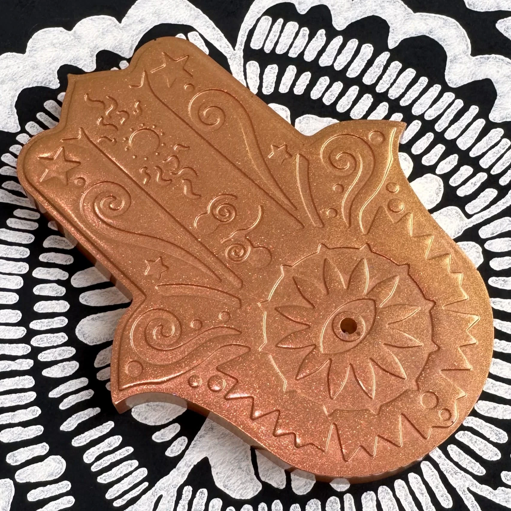 Shimmery gold incense burner. 4.75" x 3.5" budtender made.