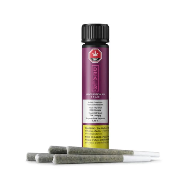 Love Potion #9 is a DEALR indica-dominant pre-roll that comes from Northern Lights #5 and Love Potion #5, two classic cultivars known for their expressive profiles. The flavour unfolds with soft floral sweetness and light herbal tones, followed by earthy pine and a gentle spice on the finish. It also leans warm and nostalgic, layering fresh flowers, and a subtle incense-like note. Love Potion #9 offers a smooth, refined profile with a quiet nod to closeness.