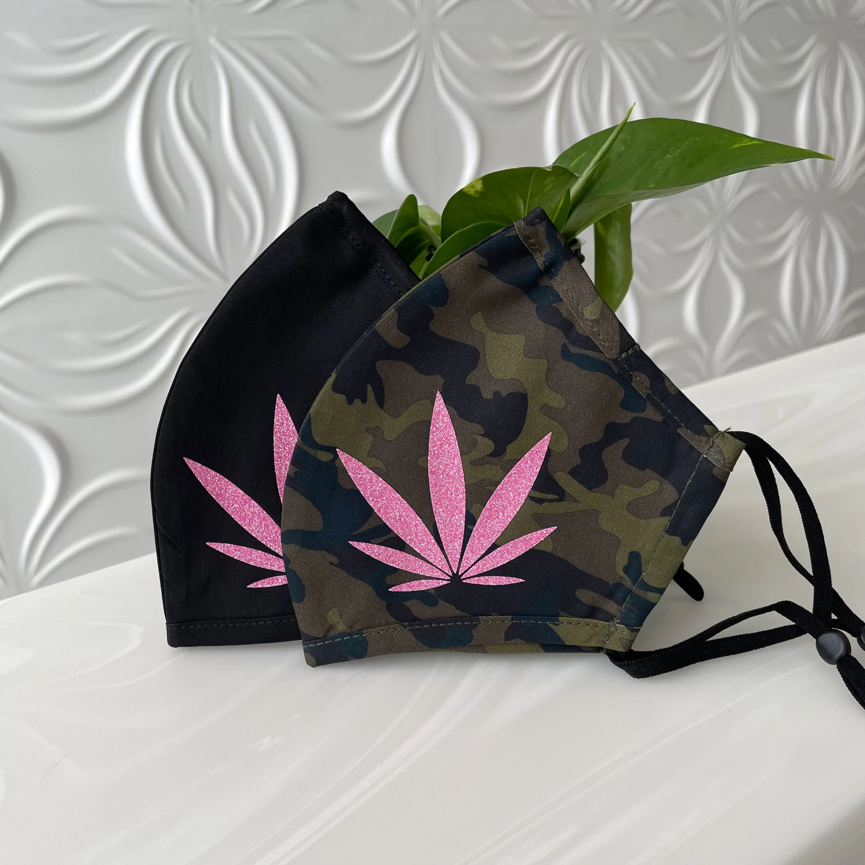 Epik Leaf Mask - pink glitter on camo