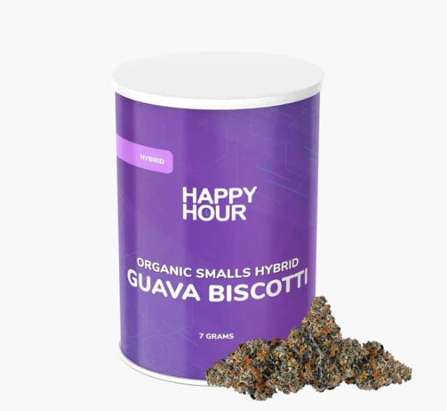 Guava Biscotti is a potent hybrid strain with an indica-leaning personality, bred from a unique backcross of Guava Biscotti x Guava Biscotti. This strain offers a rich, dessert-inspired flavour profile – think creamy biscotti accented by bold earthy, peppery, and woody notes – making each inhale smooth and satisfying. Happy Hour Organic Smalls 7g delivers clean, sustainable cannabis without compromise.