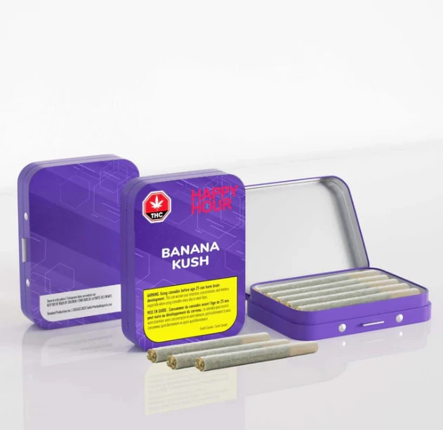 Happy Hour Banana Kush 10 x 0.5g Pre-Rolls bring legacy genetics to life in a smooth, straight-cut format. This iconic hybrid - a cross of Ghost OG and Skunk Haze - delivers lush tropical sweetness with creamy banana overtones, rooted in decades of classic cannabis culture. Each pre-roll is precision-milled and Blackbird-rolled by RollPros using whole flower, not trim or shake, and finished straight-cut for a consistent, clean burn from tip to crutch. With a moisture content above 11%, these joints smoke smooth and slow, preserving flavour from first draw to last.