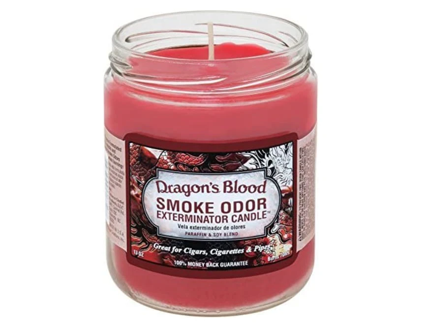 Dragon's Blood offers a compelling scent of incense with amber and vanilla. Smoke Odor Exterminator Candles are great for cigars, cigarettes, and pipes. The enzyme-formulated candle attacks and removes smoke odors while burning for approximately 70 hours, making these fragrant candles wonderful gifts, even for non-smokers!